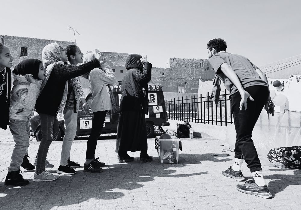 Cette parenthèse solidaire se déroule au bivouac aux pieds des dunes de Merzouga.