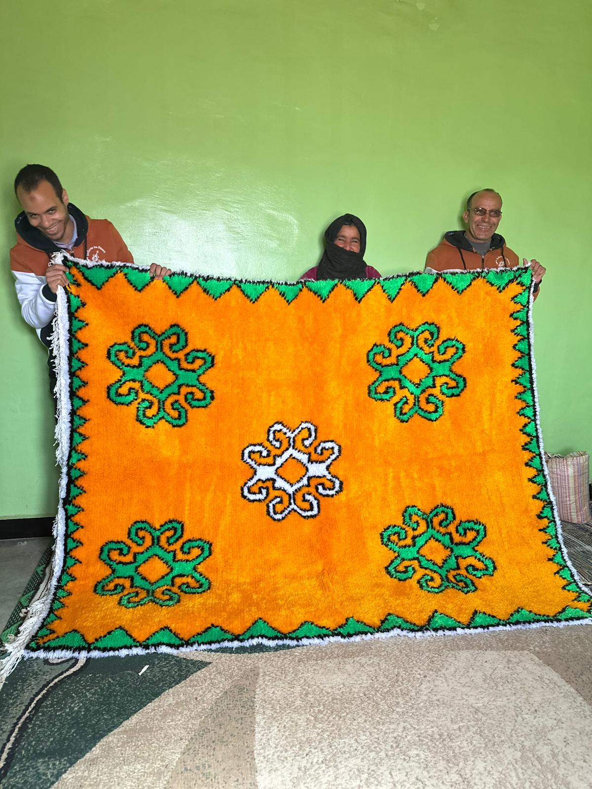 Un bleu intense qui sublime les motifs berbères qu’Ait Ali a tissé avec patience et talent… ce talent a tout pour illuminer une pièce de votre logement et lui apporter une touche artisanale. Tout en soutenant son travail.