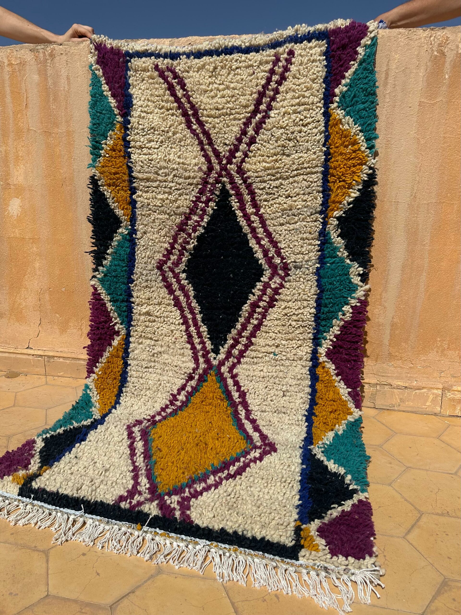 En pure laine tissée et colorée par Azzeroual, ce tapis moderne et emprunt des traditions berbères saura rendre unique votre intérieur ✨🤍