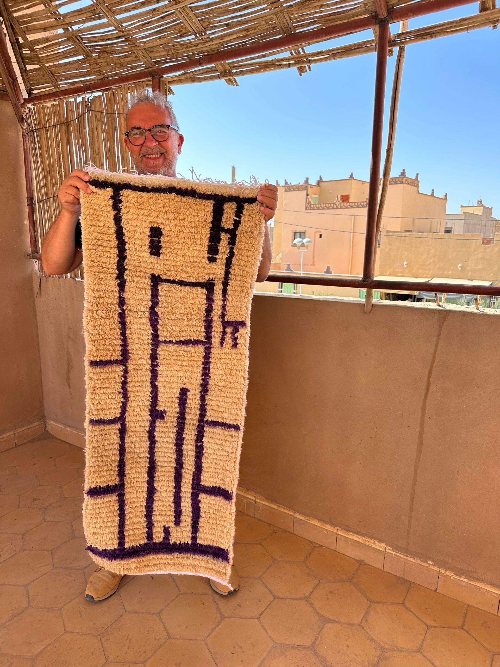 📸 Sur la photo, le tapis Soukaïna est présenté par Laetitia, co-fondatrice et présidente de notre association !