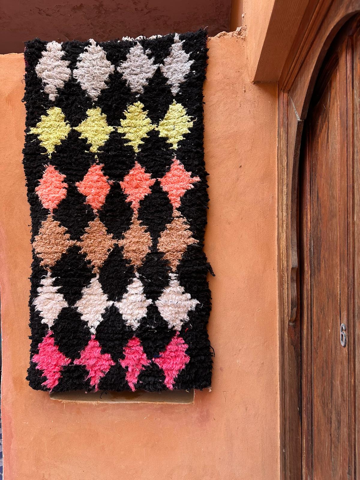 Ce tapis rouge puissant et intensément moelleux a été réalisé par Soumia. Il ajoutera du confort et de la couleur à votre intérieur tout en soutenant la quête d’autonomie de Soumia.